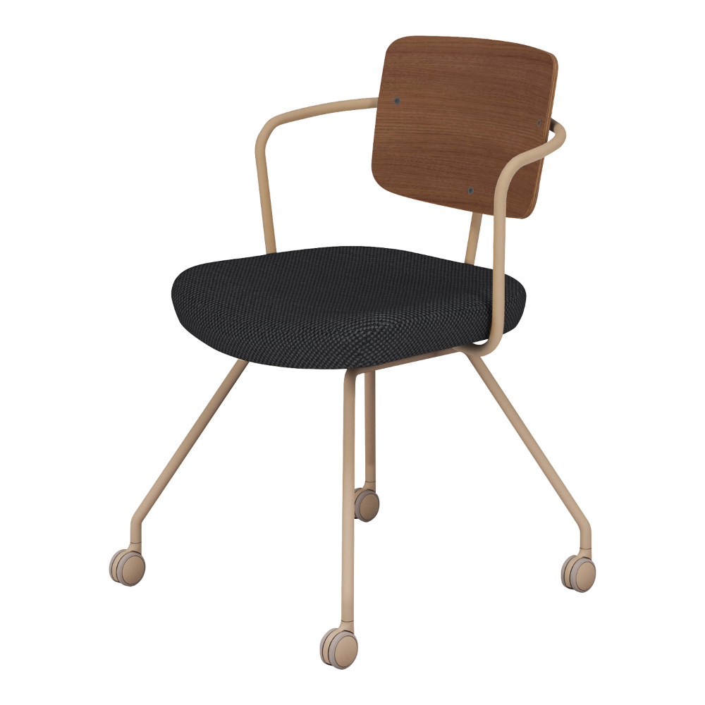 ●材質/【背】<背フレーム>スチール丸パイプ(粉体塗装)<背板>ブナ成型合板【座】<座板>ポリプロピレン<クッション>張り地、ウレタンフォーム【脚】スチール丸パイプ(粉体塗装)<キャスター>ポリウレタン巻き